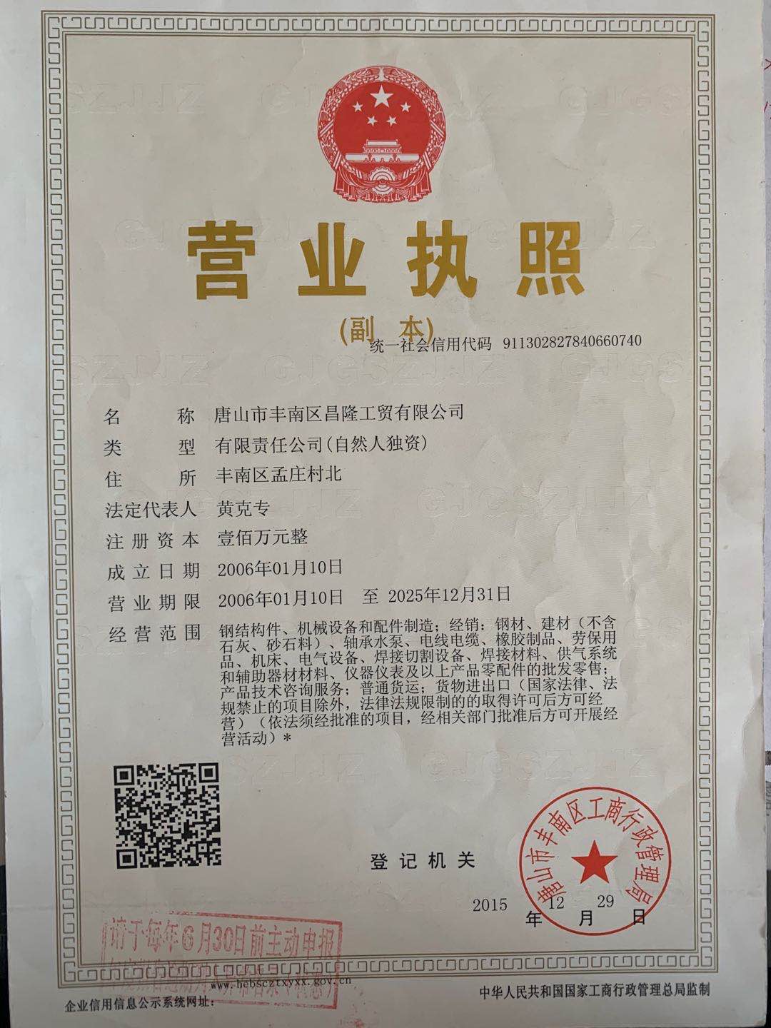唐山市豐南區昌隆工貿有限公司